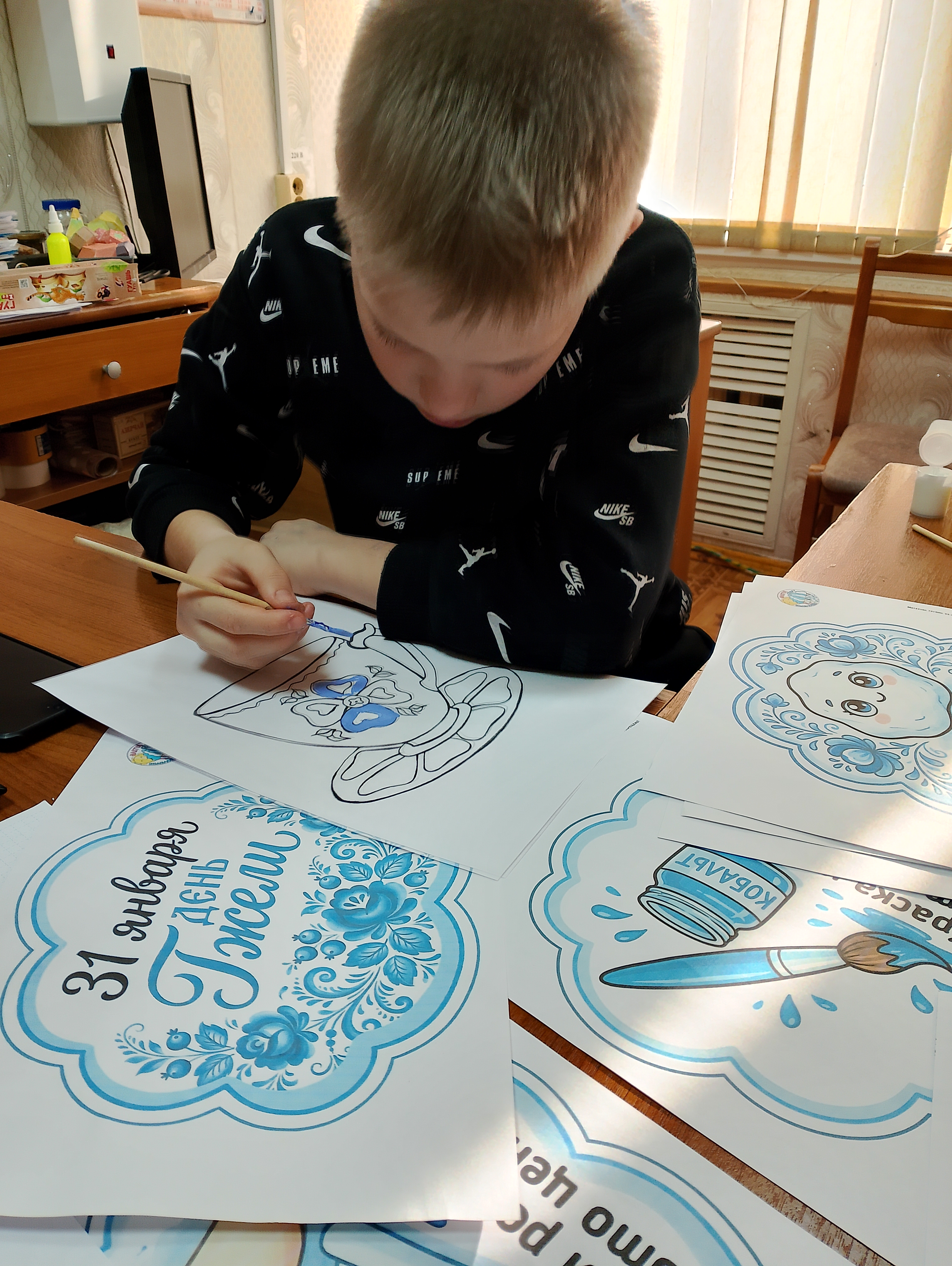 31 января –отмечается " День Гжели". Гжель - это древнерусская народная роспись, характеризующаяся своими узорами, голубой и белой гаммой. В нашем Центре специалист по работе с семьей с детьми украшали блюдца и тарелки в стиле гжель. Это стало увлекательным занятием для детей. В начале с детьми поговорили об истории и традициях росписи в стиле Гжель, посмотрели примеры изделий с этим орнаментом. Затем ребята сами создали украшение для своего изделия, используя элементы этого стиля.