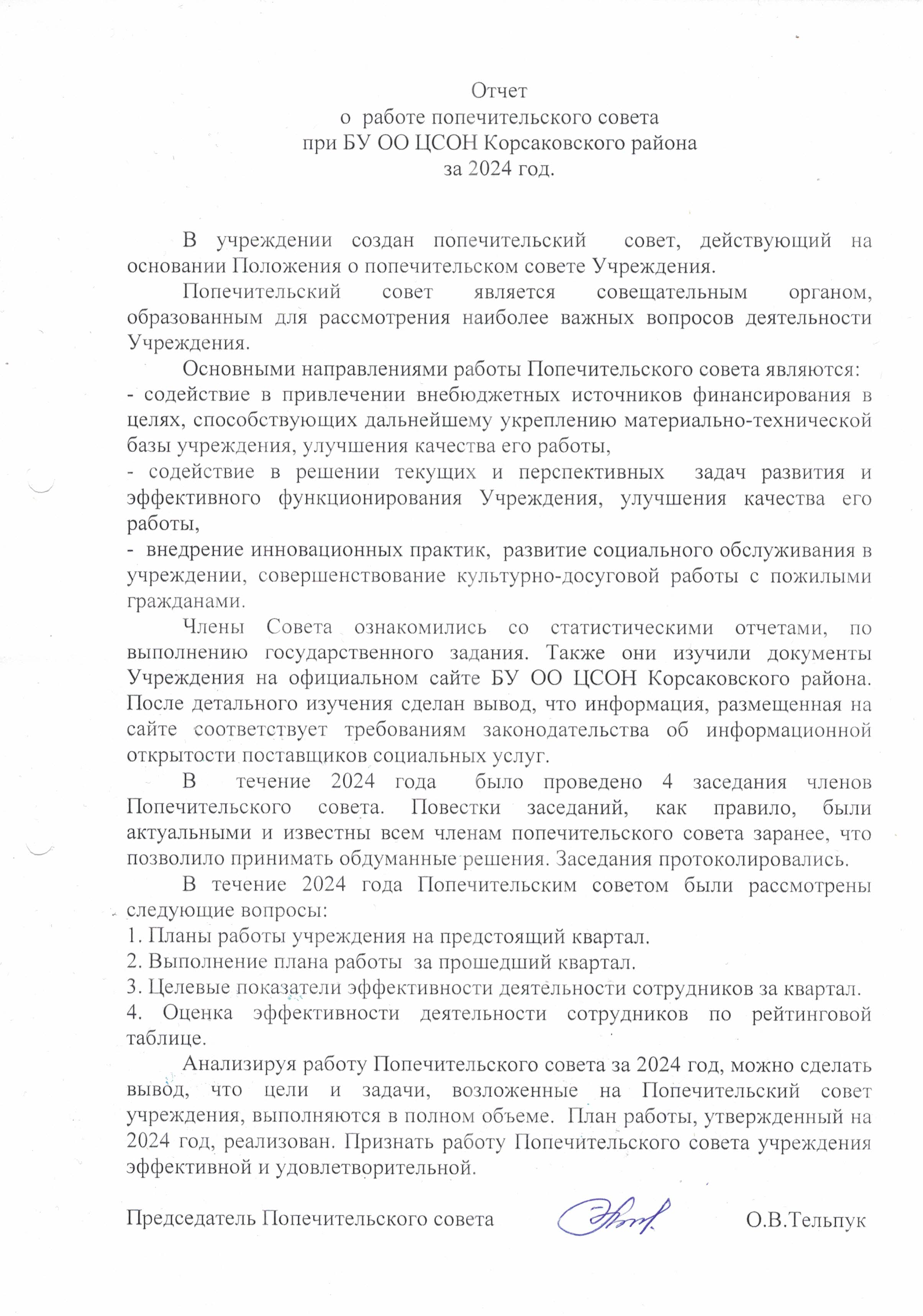 Отчет о работе попечительского совета при БУ ОО "ЦСОН Корсаковского района" за 2024 год
