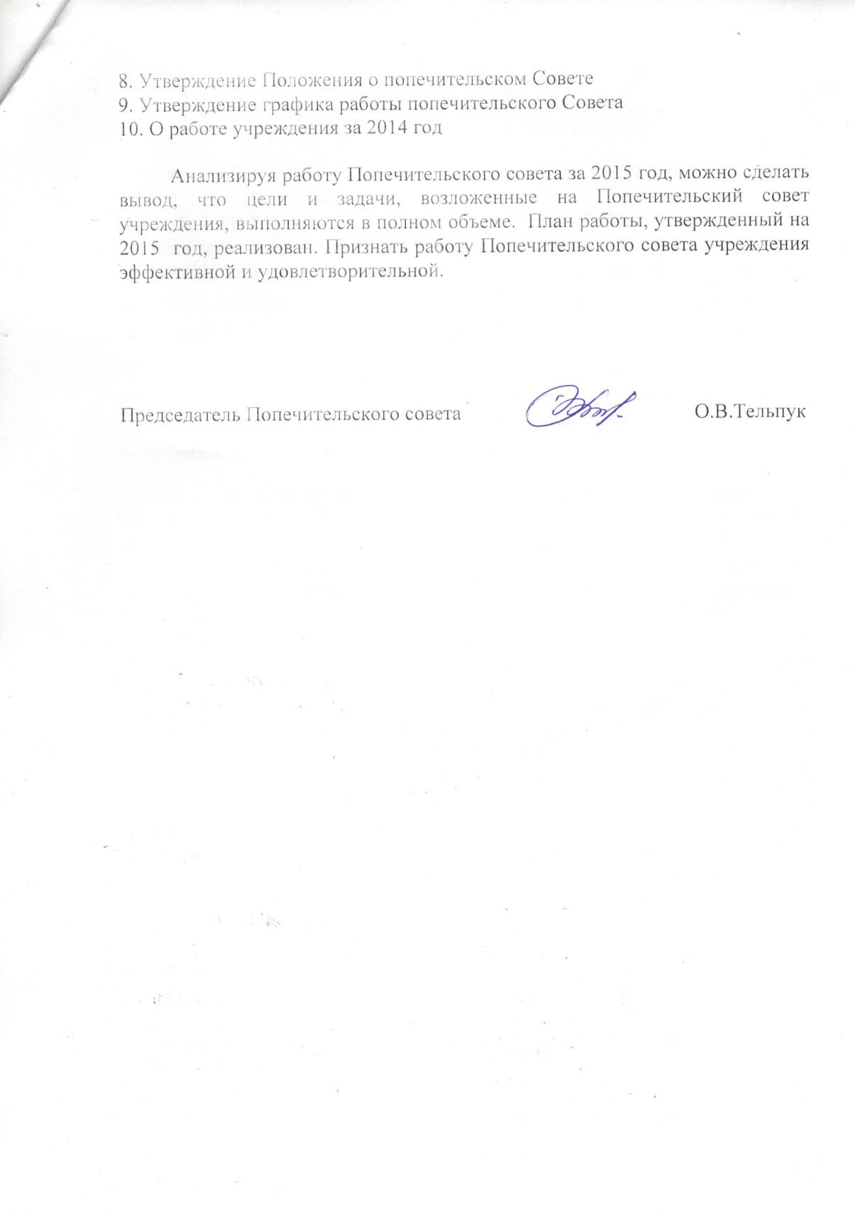 Отчет о работе попечительского совета при БУ ОО "ЦСОН Корсаковского района" за 2015 год