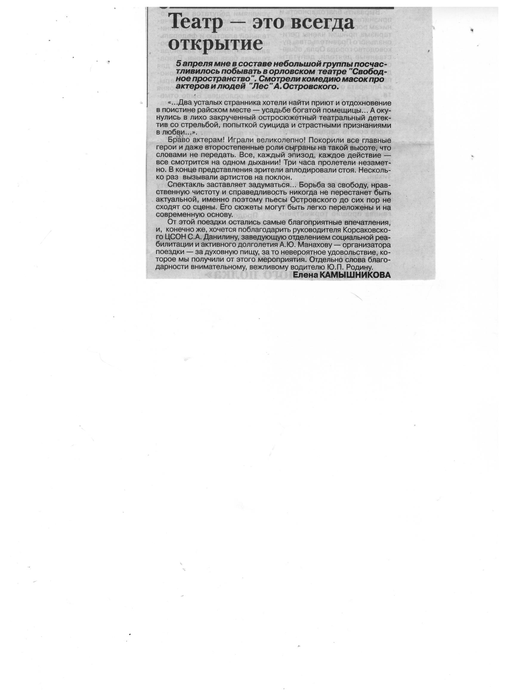 Граждане пожилого возраста отделения социальной реабилитации и активного долголетия посетили театр "Свободное пространство" г. Орел 5 апреля 2019 года