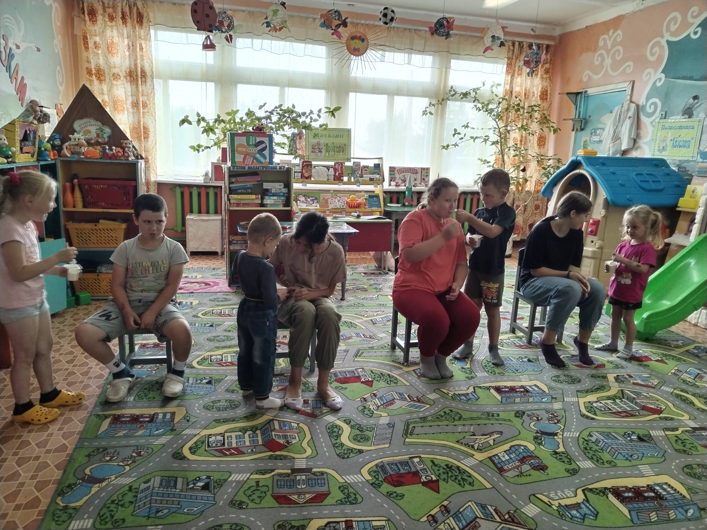 Дети узнали, в честь кого празднуется День семьи, любви и верности, узнали о том, что ромашка является символом любви. Посмотрев мультфильм «Сказание о Петре и Февронии», юные участники мероприятия познакомились с историей жизни святых супругов. Затем ребята приняли участие в эстафете «Супермен», маленькие участники должны были аккуратно накормить йогуртом своего друга.