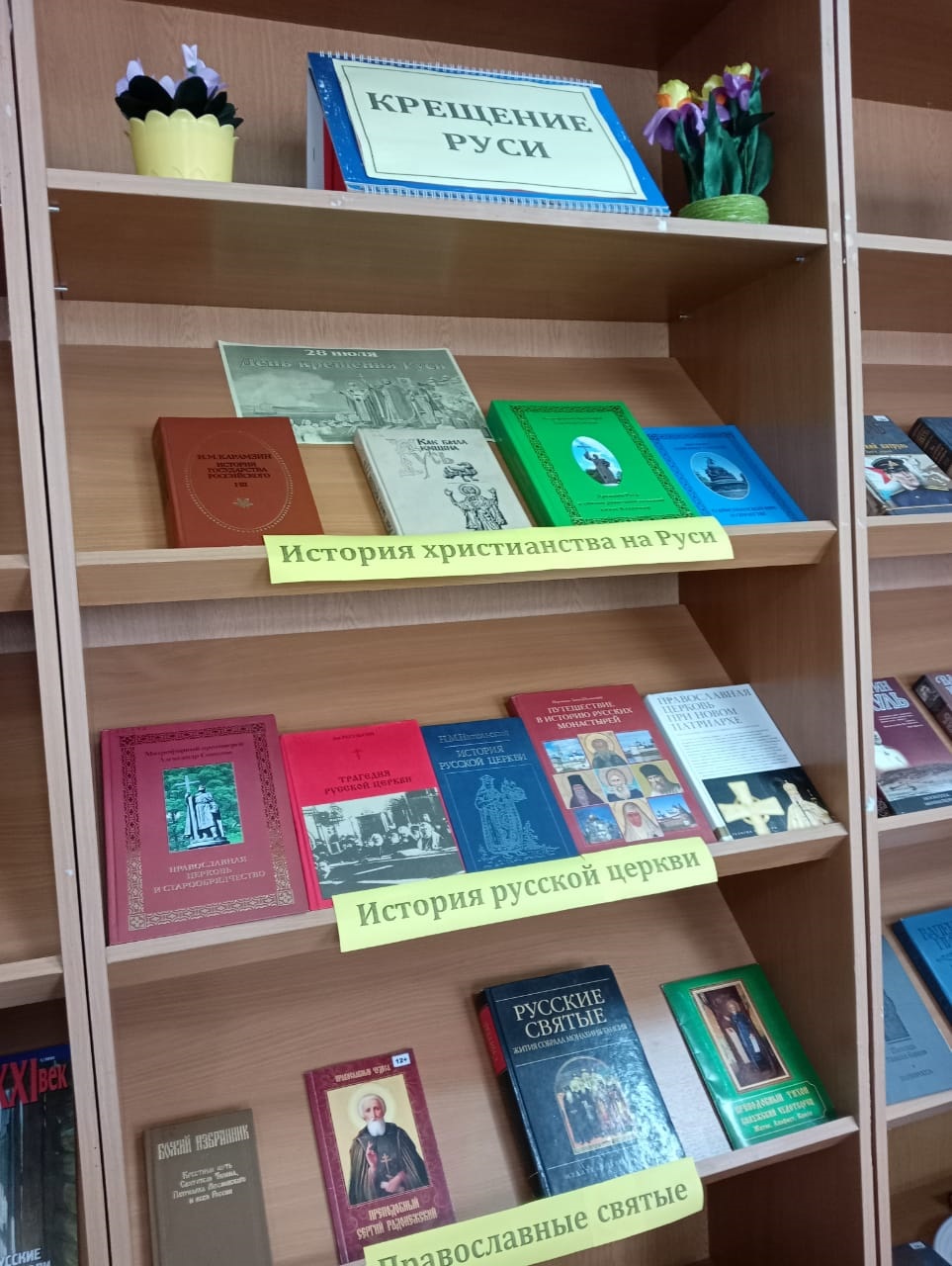 Сотрудниками библиотеки была подготовлена книжная выставка, где были подобраны книги об истории христианства Руси, истории русской церкви, о православных святых.