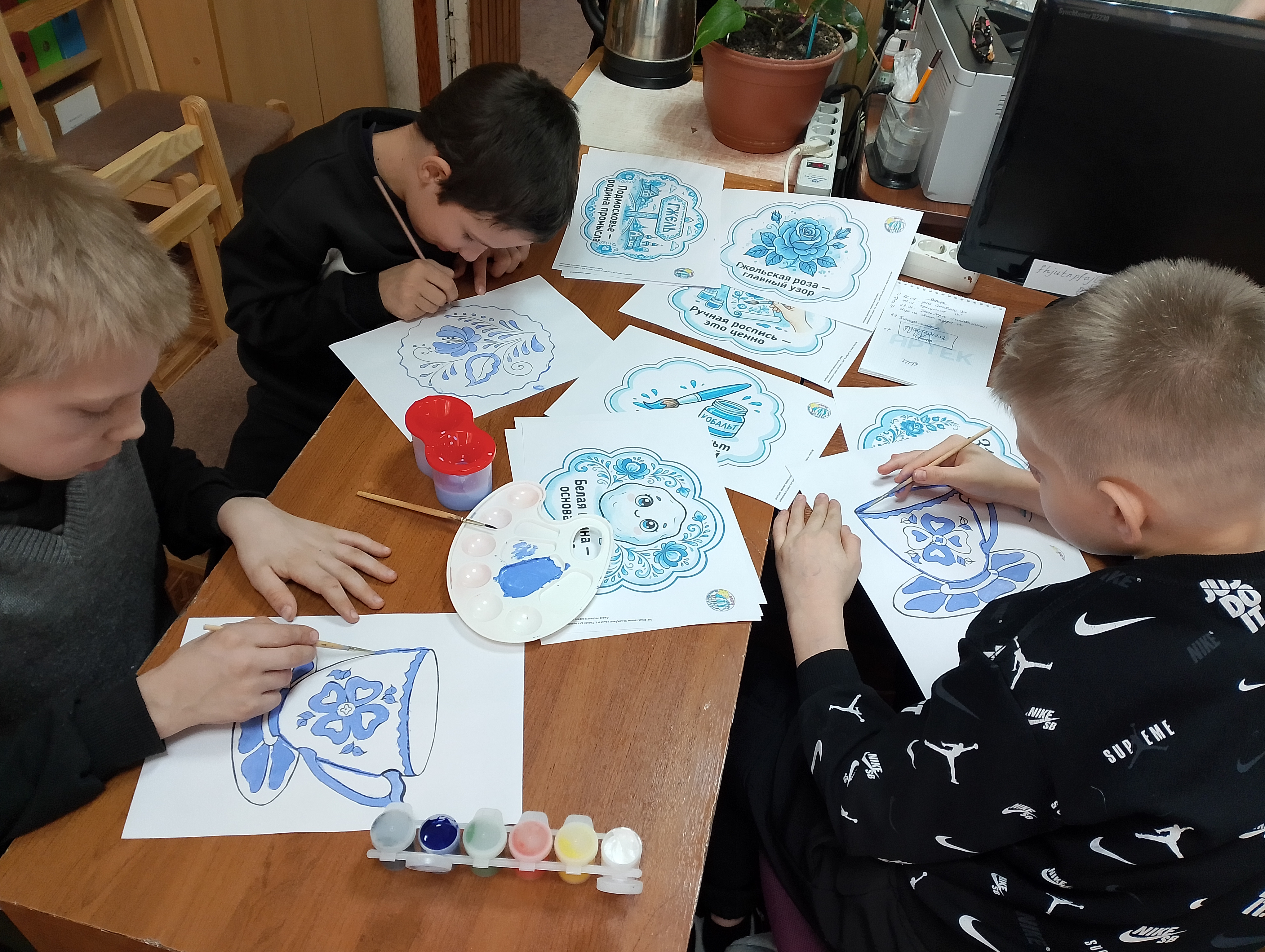 31 января –отмечается " День Гжели". Гжель - это древнерусская народная роспись, характеризующаяся своими узорами, голубой и белой гаммой. В нашем Центре специалист по работе с семьей с детьми украшали блюдца и тарелки в стиле гжель. Это стало увлекательным занятием для детей. В начале с детьми поговорили об истории и традициях росписи в стиле Гжель, посмотрели примеры изделий с этим орнаментом. Затем ребята сами создали украшение для своего изделия, используя элементы этого стиля.